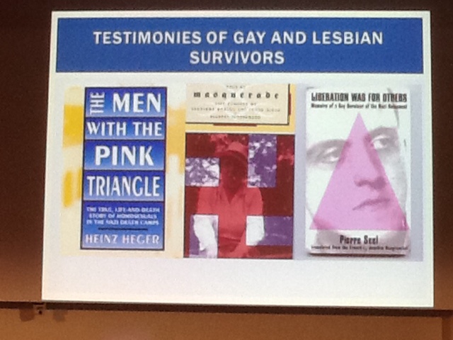 Tonight's session is by American William Spurlin, now living and teaching in England, who is talking of the effects of the Holocaust on gays and more. In memorable pink trousers he arrives and prepares for the talk in front of about twenty-five spectators which is a good number considering the relative small size of the conference.